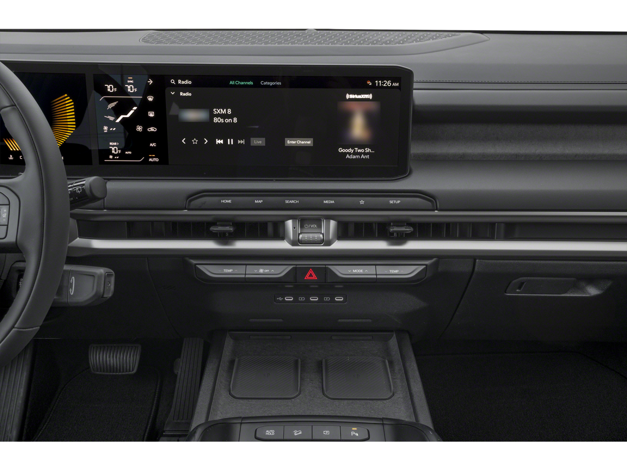 • Radio: AM/FM Display Audio System -inc: 12.3" center infotainment w/navigation, wireless Apple CarPlay and Android Auto, SiriusXM, Bluetooth® w/voice recognition, 8 SoundHound speakers, passenger talk, Wi-Fi hotspot, Kia Connect, Over-the-Air update capability and 1 data USB-C port in front row